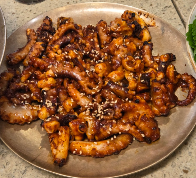 매콤한 양념과 쫄깃한 낙지의 조화가 매력적이다.