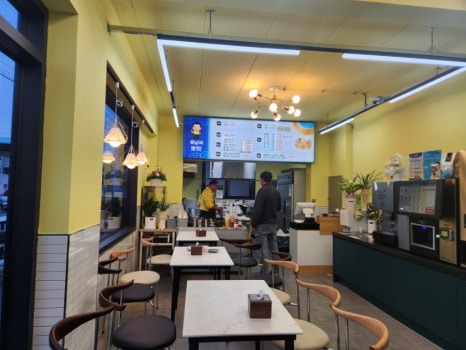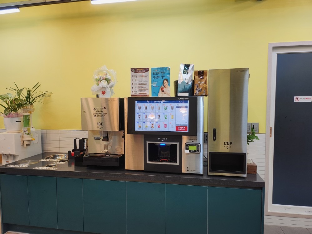 매장 한편에는 무인 카페 시스템이 마련되어 있어 커피와 차를 자유롭게 즐길 수 있어 간단한 식사와 디저트를 한 번에 해결할 수 있습니다.