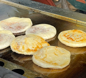 장터에서 이어온 방식 그대로 주문 즉시 반죽을 눌러 철판 위에서 노릇하게 구워내는 전통을 고수하고 있습니다. 40년 세월이 축적된 반죽 비율과 굽기 노하우 덕분에 겉은 바삭하고 속은 촉촉한 식감이 선명합니다. 설탕과 씨앗이 넉넉히 들어간 호떡은 한입 베어 무는 순간 달콤한 향이 퍼지며 깊은 만족감을 줍니다.