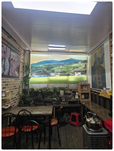 내부는 정갈하게 정돈되어 있으며, 벽면에는 방송 출연 사진이 걸려 있어 세월의 흔적을 느끼게 합니다. 오픈 주방 형태로 일부 조리 과정을 볼 수 있어 신뢰감을 주며, 점심시간에는 재료가 조기 소진될 만큼 인기가 높습니다. 자극적인 음식 대신 담백하고 진한 국물 한 그릇으로 위로를 건네는 곳, 의령 자굴산 아래에서 만나는 따뜻한 밥집입니다.