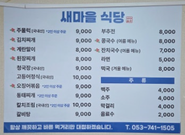 - 상호명 : 새마을식당