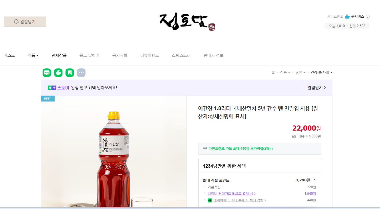 💳 가격대 : 어간장 420ml 약 14,000원 선