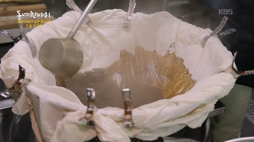 3. 맑은 국물만 걸러내기 → 잡내 없이 깊은 맛 유지