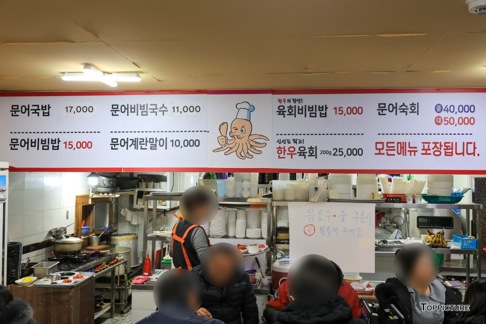 문어는 단 한 번도 얼리지 않은 생물만을 사용하여 야들야들하면서도 쫄깃한 식감이 살아 있습니다. 뜨끈한 국물에 문어를 살짝 담갔다가 한입 맛보면 구수한 한우 육향과 시원한 바다 향이 조화를 이루며 입안 가득 풍미가 퍼집니다. 고기도 푸짐하게 들어 있어 든든한 식사가 가능하며, 국물은 개운하면서도 깊이가 있어 해장용으로도 큰 인기를 얻고 있습니다.
