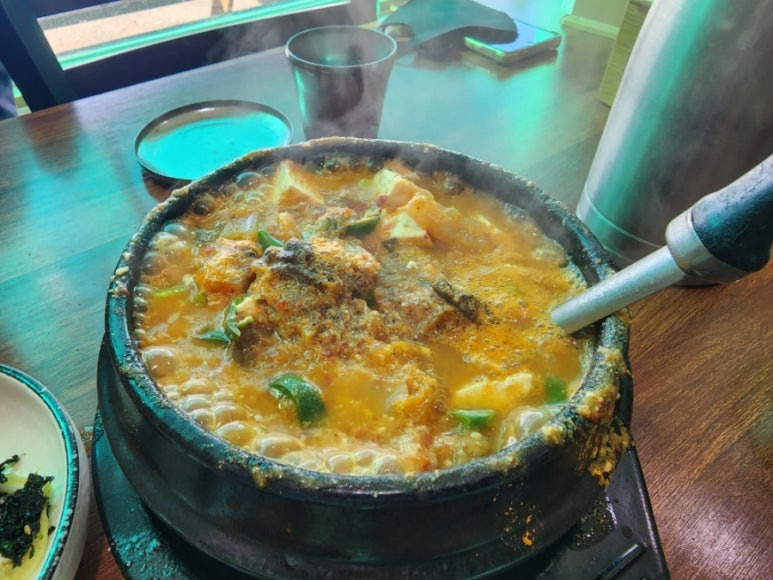 묵은지전골과 함께 주문하면 좋은 메뉴가 바로 청국장입니다. 이곳의 청국장은 직접 띄워 만든 전통 방식의 청국장으로 특유의 강한 냄새가 거의 없고 구수하고 깊은 감칠맛이 특징입니다. 뚝배기에 보글보글 끓여 나오는 청국장은 담백한 두부와 함께 어우러져 밥 한 공기를 금세 비우게 만드는 매력을 가지고 있습니다.