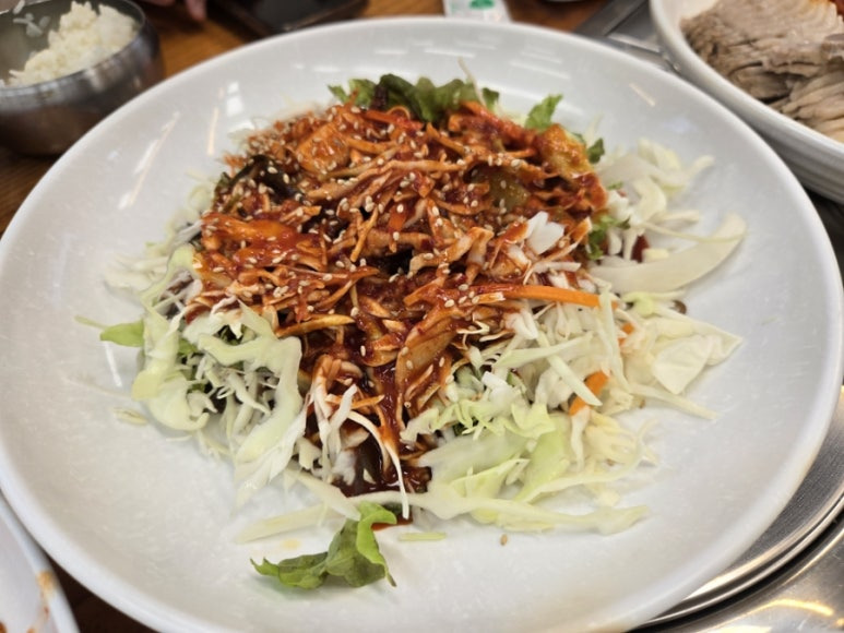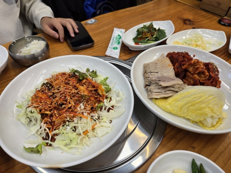 여기에 아삭하게 잘 익은 보쌈김치와 신선한 쌈 채소까지 더해져 균형 잡힌 한 상이 완성됩니다. 방문객들 사이에서도 “고기가 정말 부드럽다”, “칼국수까지 포함된 가성비 최고의 보쌈집”이라는 긍정적인 평가가 이어지고 있으며, 점심 시간에는 직장인들로 붐빌 만큼 인기가 높습니다.