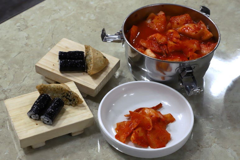 기본 상차림으로 제공되는 충무김밥과 유부초밥, 석박지는 전체 식사의 완성도를 높여주며, 깔끔하고 정갈한 맛으로 많은 손님들의 호평을 받고 있습니다.