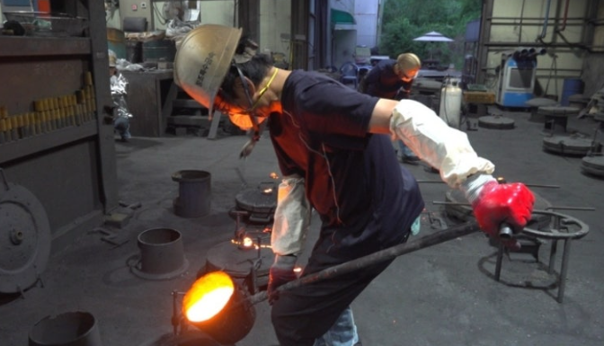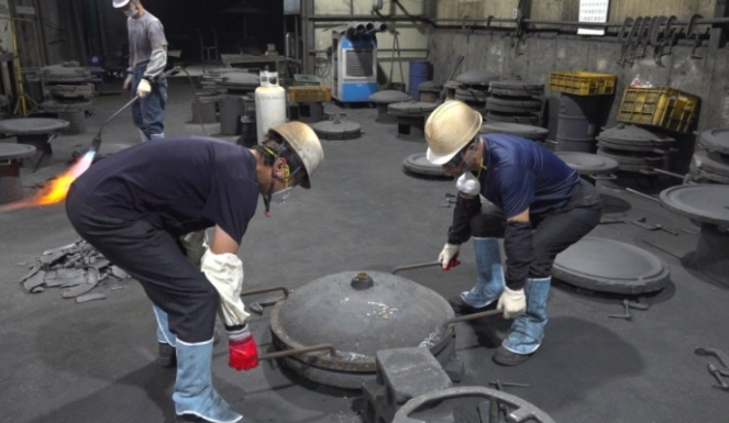 무쇠 가마솥 제작은 단순히 쇳물을 붓는 것으로 끝나지 않습니다. 거푸집에 쇳물을 넣고 식히면 곧바로 틀을 제거한 뒤 세 차례의 연마 과정을 거쳐야만 매끄러운 표면이 만들어집니다.