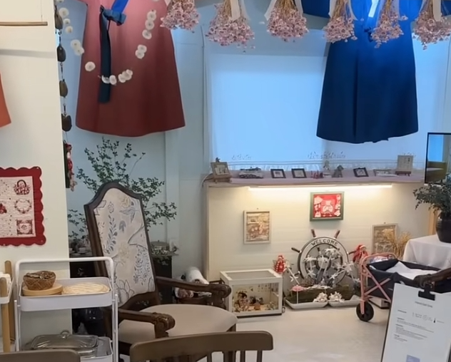 겉으로 보기에는 갤러리 같지만, 예약을 해야만 맛볼 수 있는 이곳의 밥상은 그야말로 건강과 정성이 담겨 있습니다. 내부로 들어서면 벽에는 누비저고리와 두루마기, 수제 소품, 직접 짠 식탁보까지 전시되어 있어 마치 전시회에 온 듯한 느낌을 줍니다. 식당이라기보다 갤러리에 가깝지만, 예약한 손님들에게는 특별한 식사가 차려집니다.