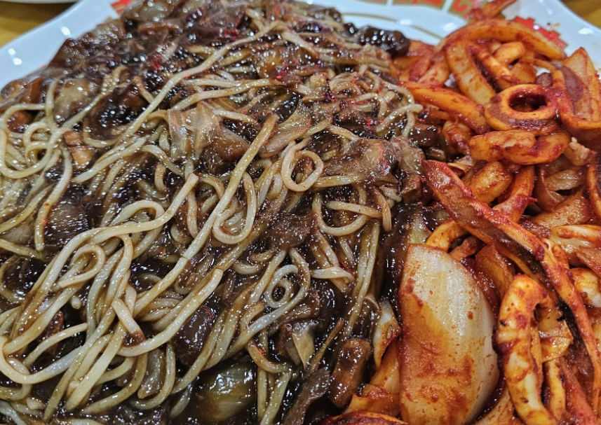 일반적인 짜장은 단품 그릇에 담겨 나오지만, 이곳에서는 넓은 쟁반 위에 푸짐하게 담긴 쟁반짜장이 대표 메뉴입니다. 무엇보다 신선한 오징어볶음을 올려낸 독특한 조합이 시청자들의 눈길을 끌었습니다. 달콤하면서도 불향 가득한 볶음소스가 쟁반짜장의 소스와 어우러져 한입 먹는 순간 깊은 풍미를 자랑한다고 소개되었습니다.