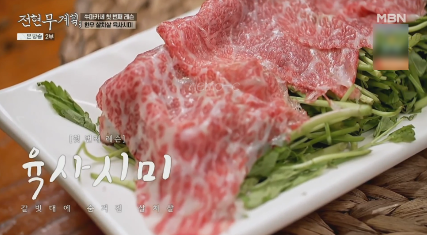 이어서 제공된 ‘살치살 육사시미’를 받아든 정윤호씨는 “사장님이 레슨해주시는 것 같다.