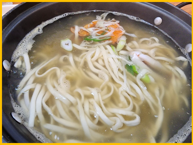 육수에는 바지락, 꽃게, 홍합 등 다양한 해물이 듬뿍 들어가 있어 시원하고 깊은 맛을 자랑합니다.